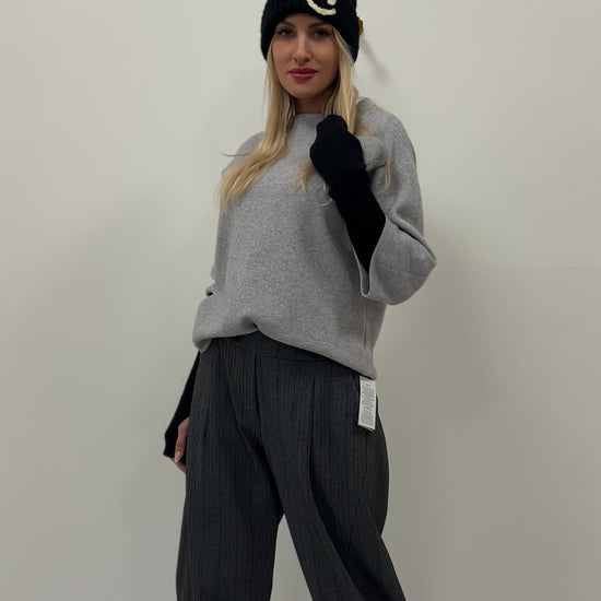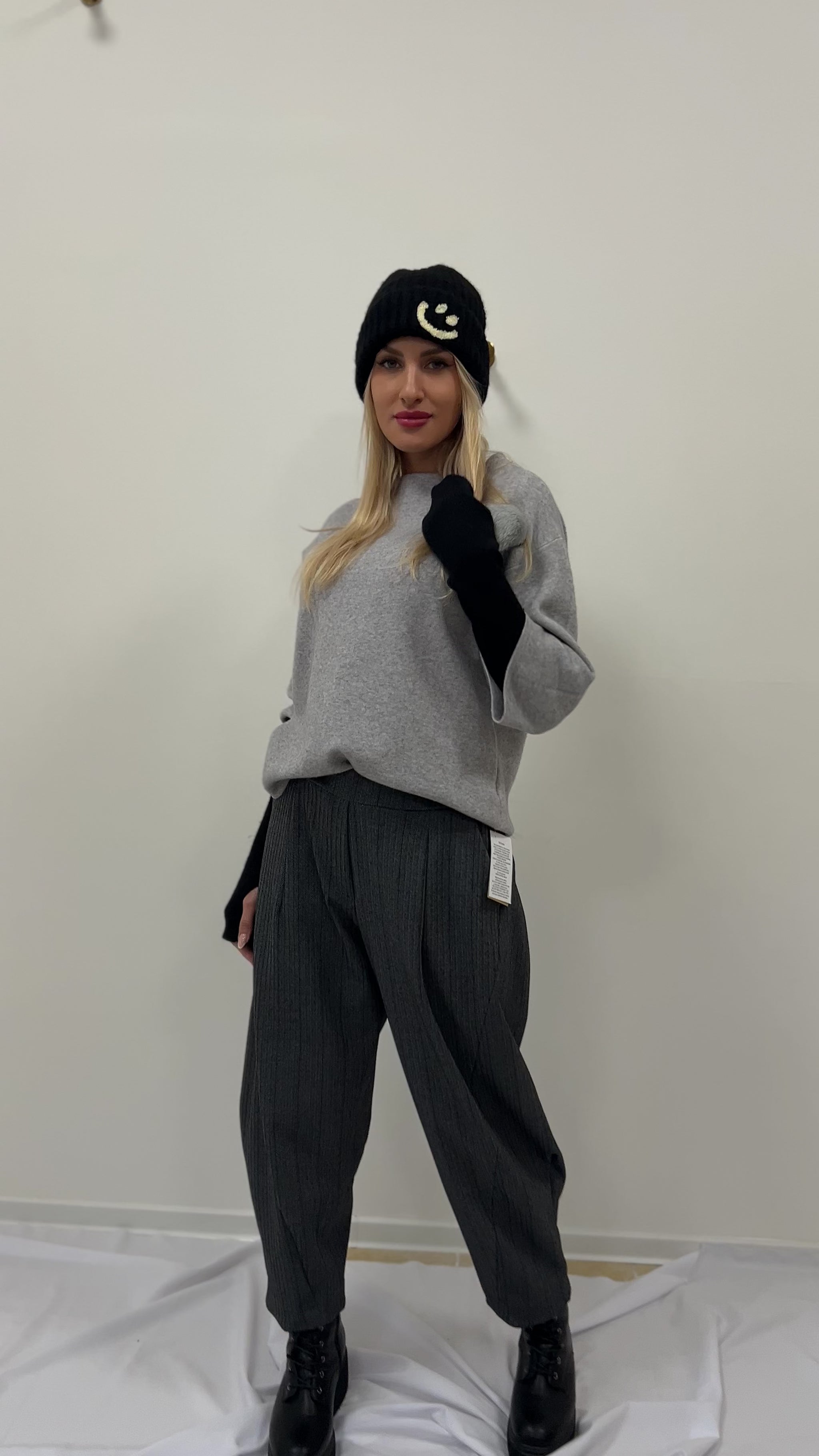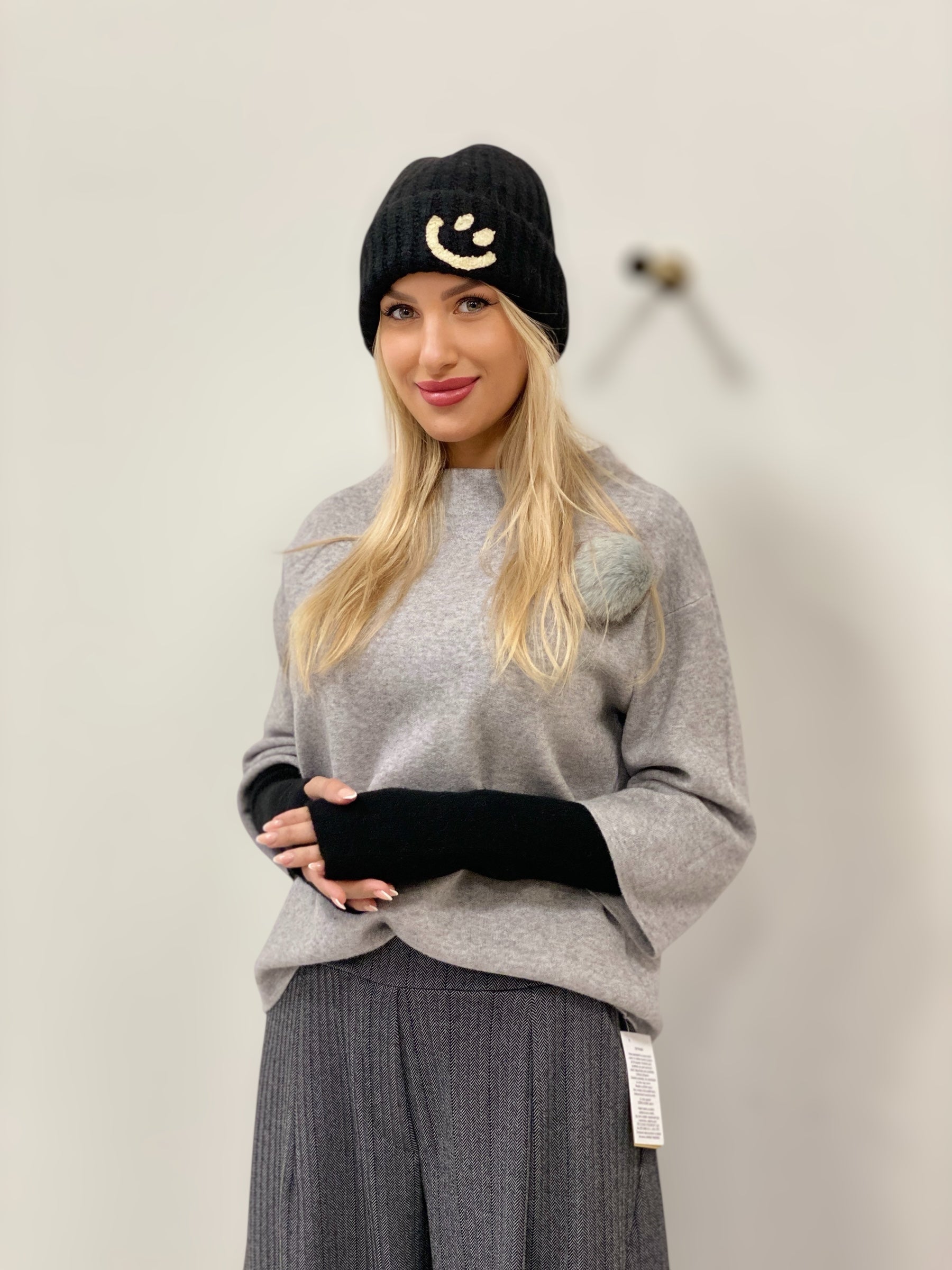 Světle šedý svetr s odnímatelnou chlupatou bambulí, která funguje jako originální brož. Elegantní střih se zkrácenými rukávy dodává outfitu lehkost a moderní nádech. Díky univerzálnímu střihu a barvě se snadno kombinuje – vytvoříte s ním jak sofistikovaný look do práce, tak ležérní basic outfit na volný čas. Praktický detail v podobě bambule vám umožní měnit styl podle nálady.