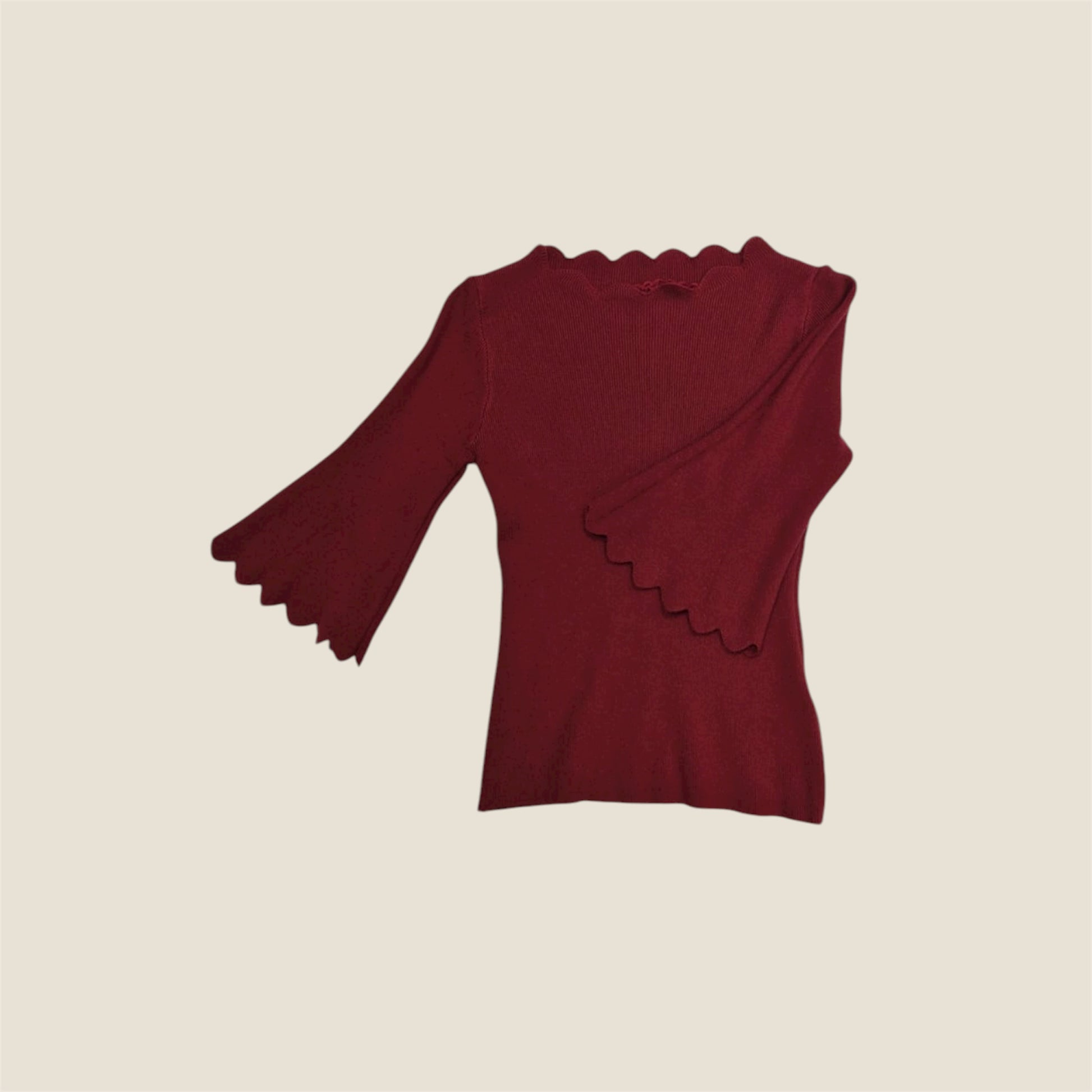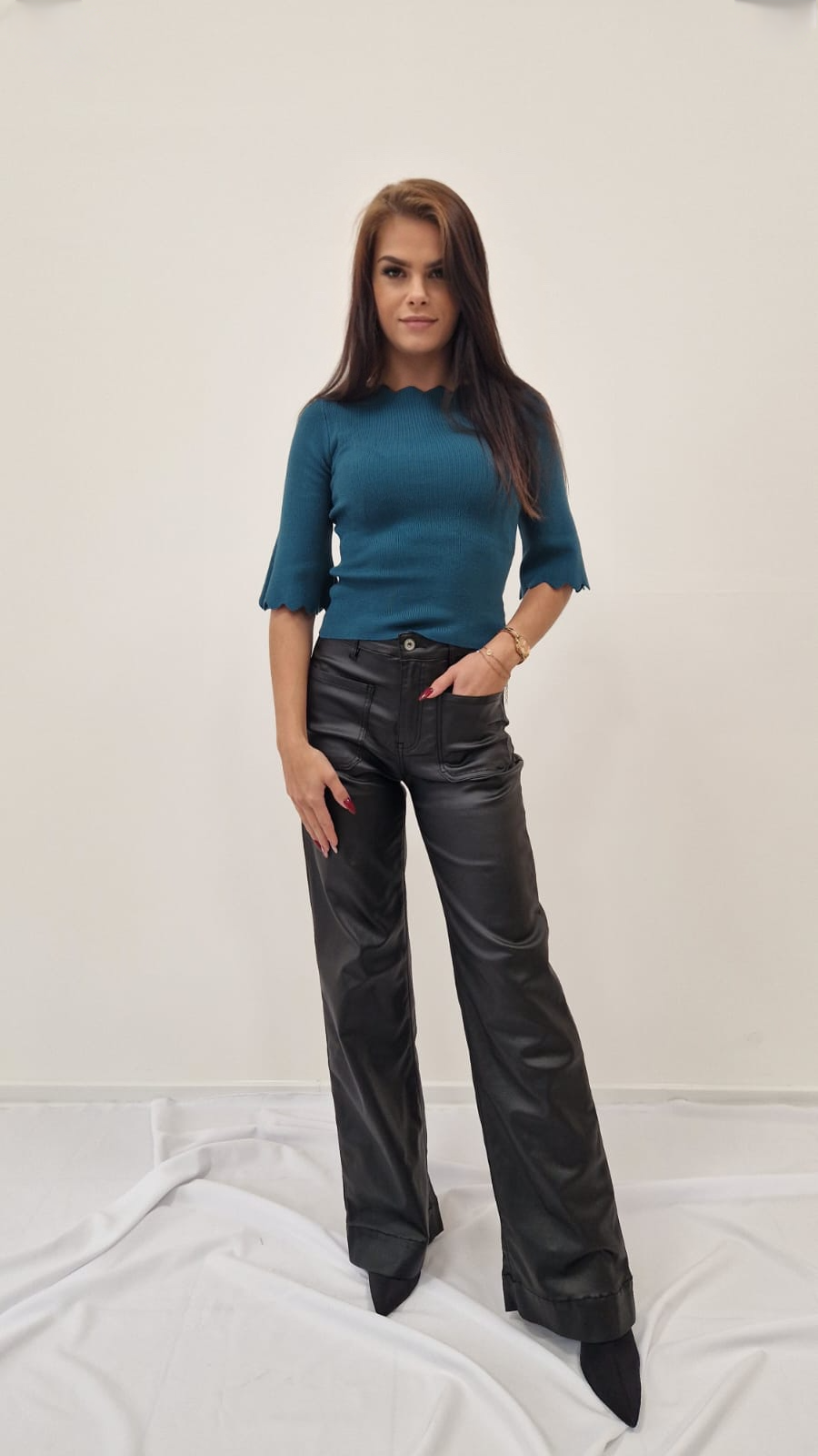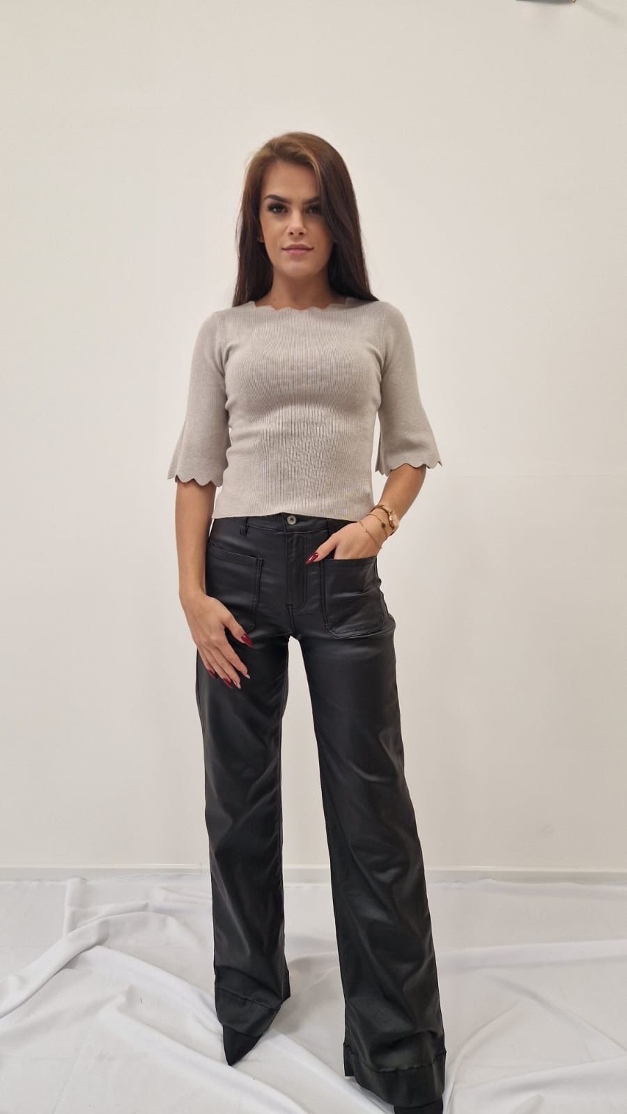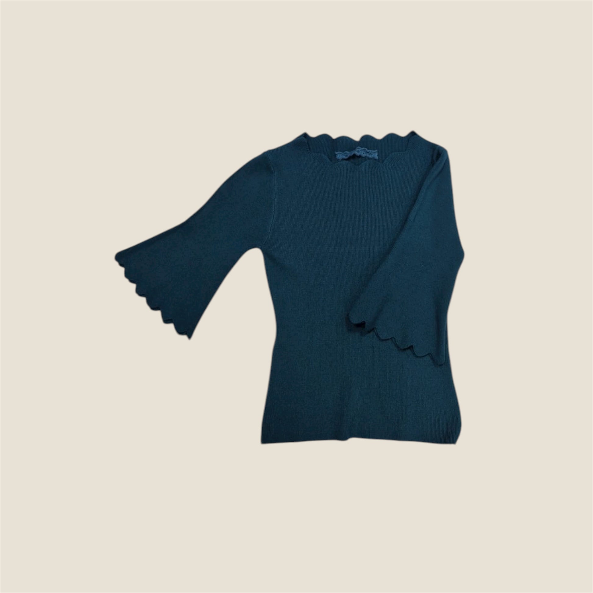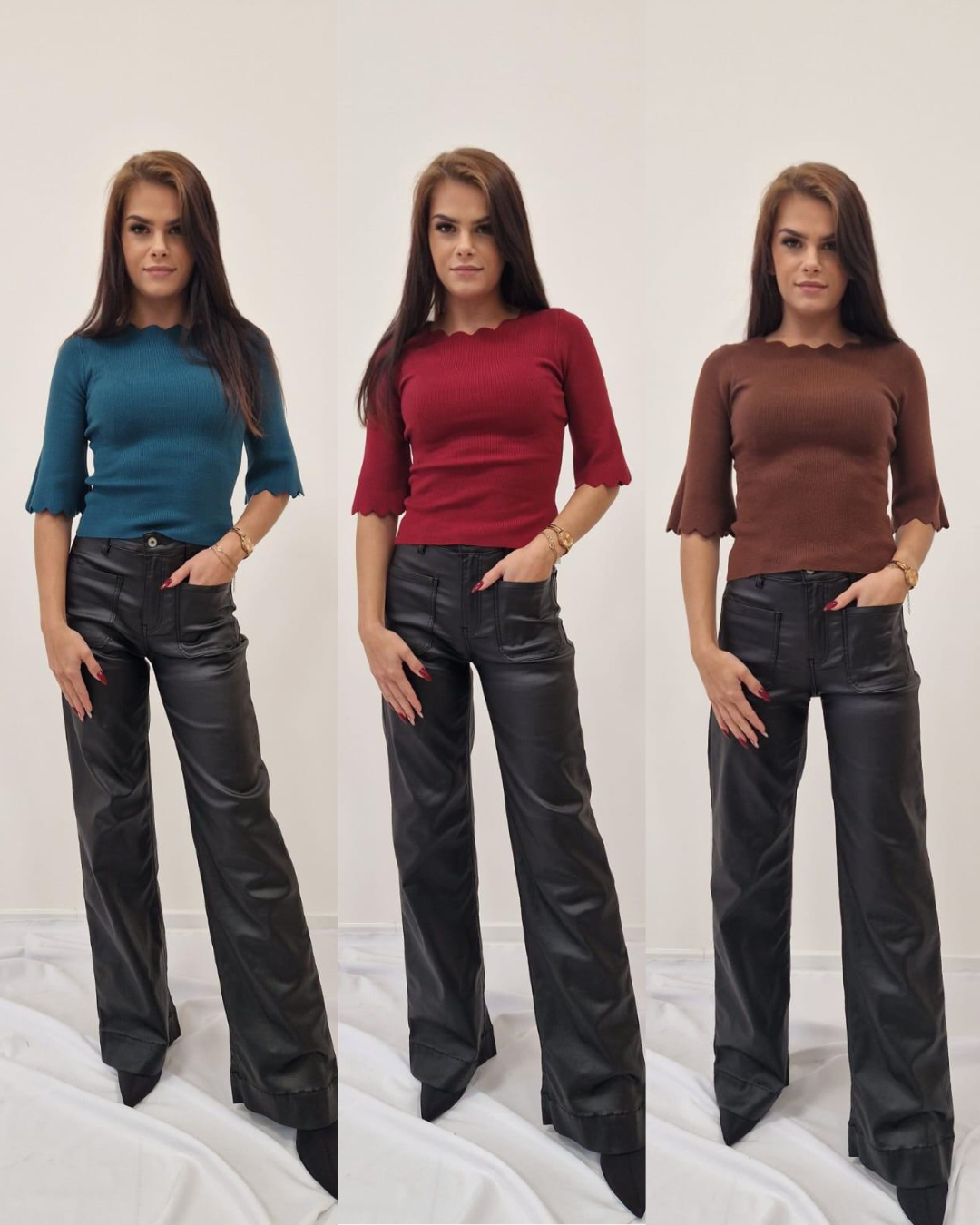 Elegantní dámský svetřík s krátkým rukávem a volánkovým lemem je ideální do kanceláře i na volný čas. Lehký, elastický a pohodlný kousek, který zahřeje, ale nezatíží. Stylová volba pro teplejší dny i podzimní vrstvení. Italská móda, která spojuje praktičnost a ženský šarm.